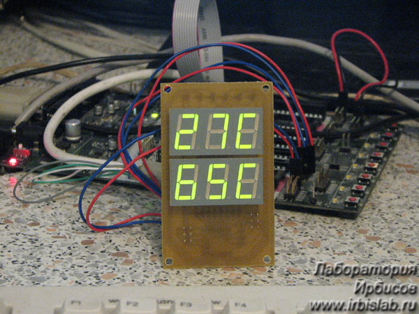 Пример 2, отображение температуры 27 и 65 градусов, пример записи пользовательского символа C, условно первый драйвер:
