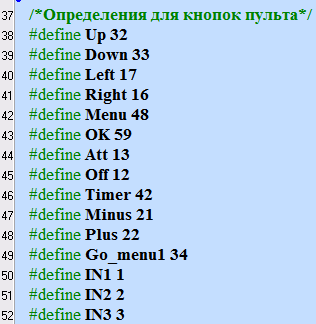 Рисунок 4 – Часть программы, определяющая коды кнопок ПДУ