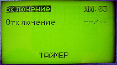 Рисунок 6 – Вид экрана при активированной функции автоматического включения (таймер установлен на 0 ч 3 мин)