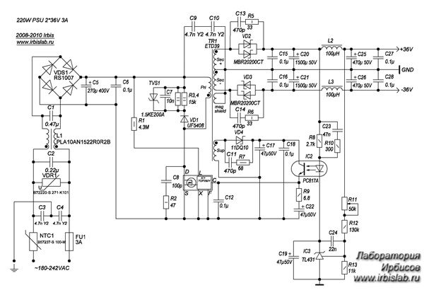 Рисунок 1 – Блок питания 220 Вт, ±36 В, 3 А